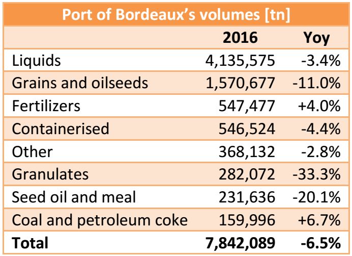 With more than 4.13 mln tn (-3.4% year-on-year), liquids made over half of Bordeaux port’s cargo turnover last year.