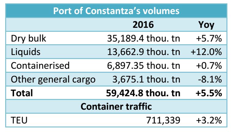 Last year, the sharpest increase was noted by the Romanian Constantza in the handlings of liquids – up by 12% year-on-year to 13.66 mln tn.