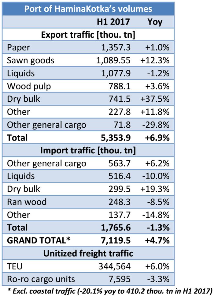 In total, the two Finnish seaports made nearly 7.12 mln tn over the course of 2017’s first half, noting an increase by 4.7% year-on-year.