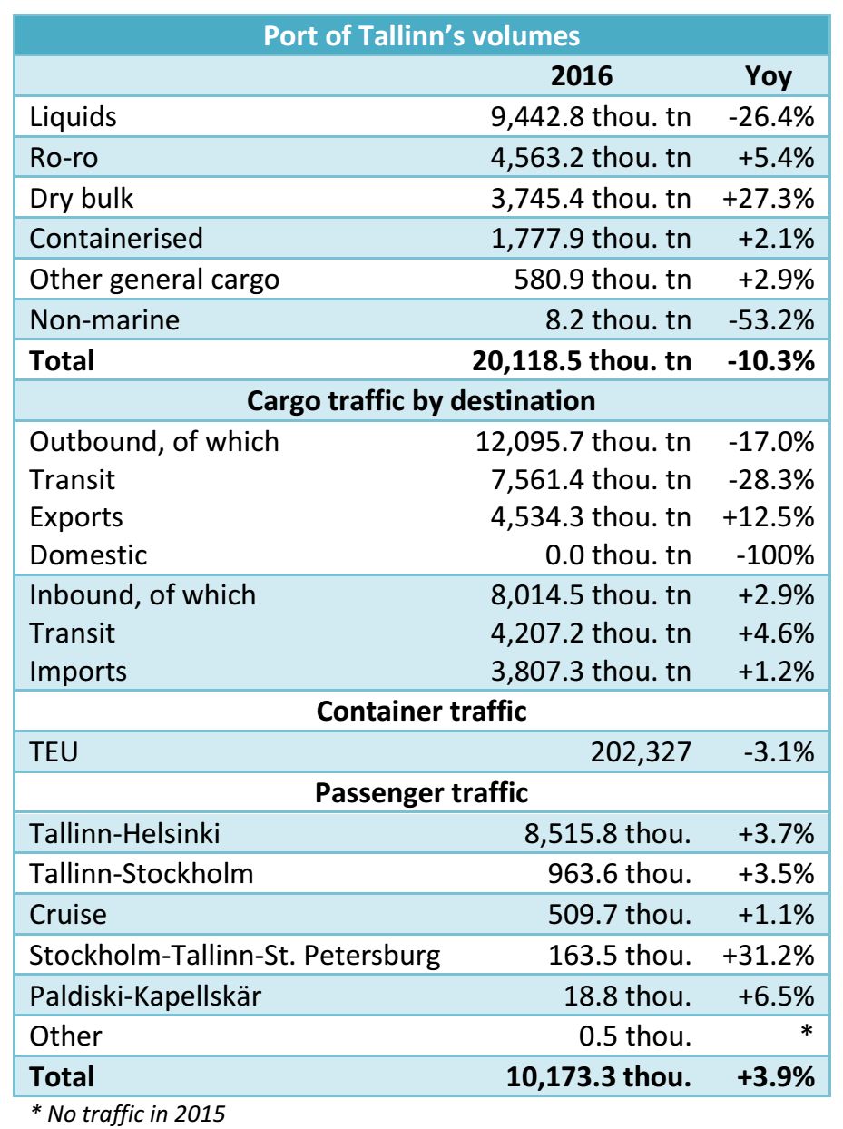 On the other hand, Tallinn’s total freight turnover contracted last year by 10.3% yoy, chiefly because of falling (-26.4% yoy) throughput of liquids (9.44 mln tn). On the other hand, dry bulk volumes jumped up by 27.3% yoy to over 3.74 mln tn.